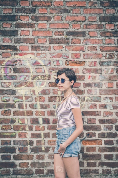 Молодая женщина-хипстер на городской улице