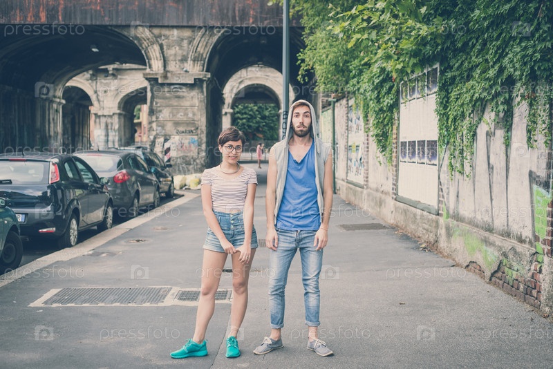 Молодой стильный мужчина и женщина на городской улице