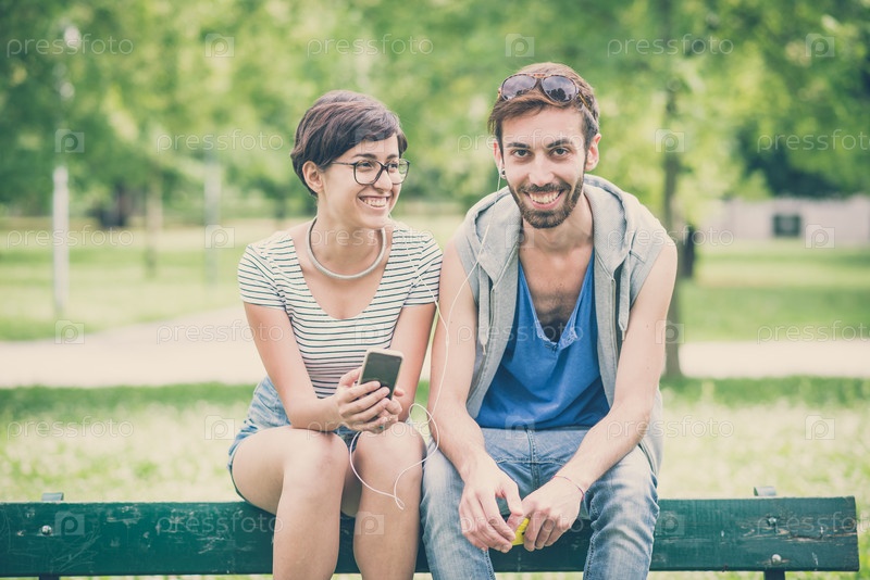 Молодой стильный мужчина и женщина на городской улице