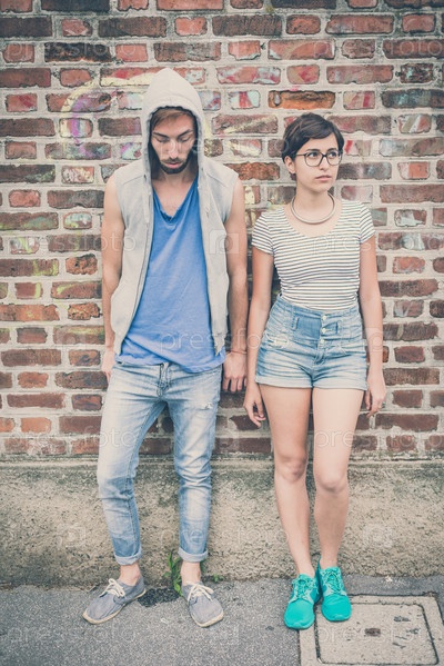 Молодой стильный мужчина и женщина на городской улице