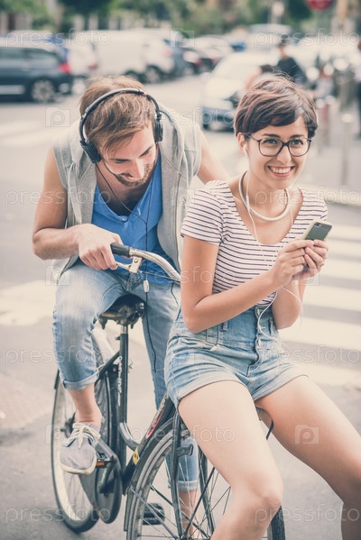 Молодой стильный мужчина и женщина на городской улице