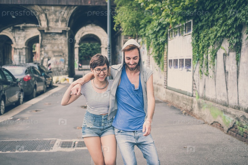 Молодой стильный мужчина и женщина на городской улице