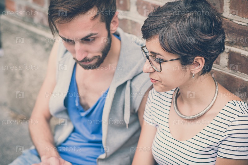 Молодой стильный мужчина и женщина на городской улице