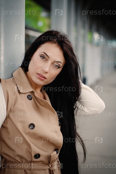 Красивая брюнетка стоит на станции