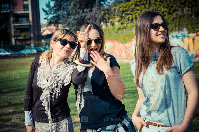 Красивые стильные девушки на улице в городе