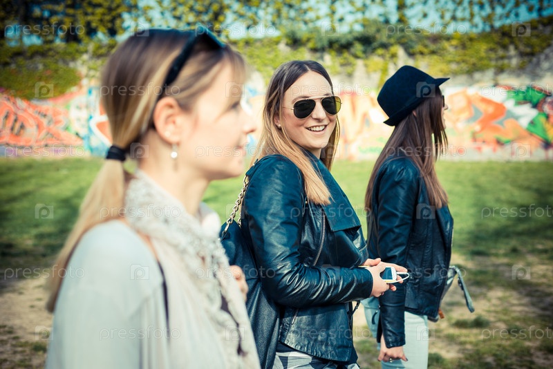 Красивые стильные девушки на улице в городе