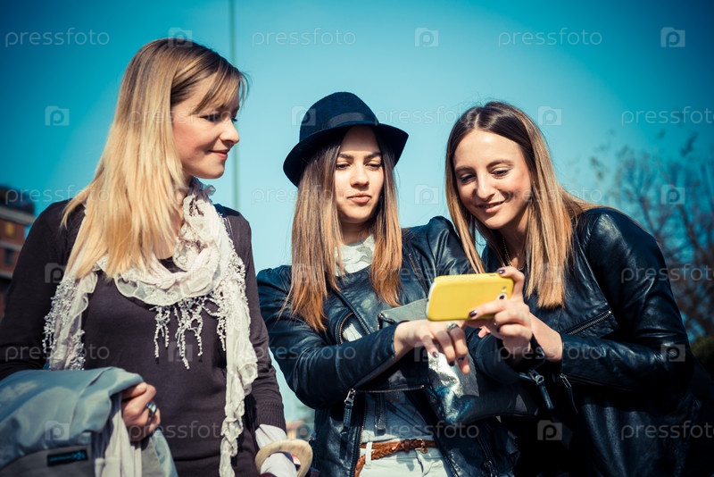 Красивые стильные девушки на улице в городе