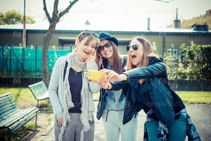 Красивые стильные девушки на улице в городе