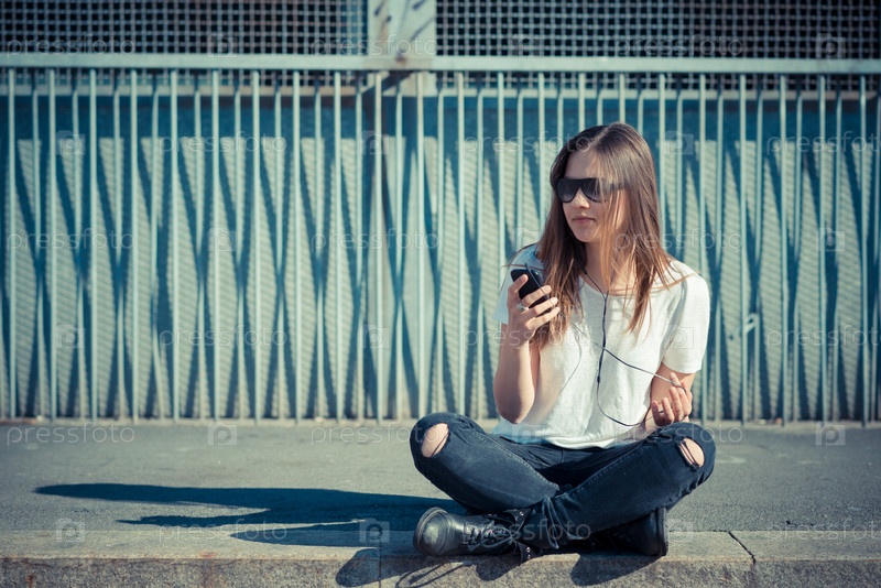 Молодая красивая женщина с телефоном на улице