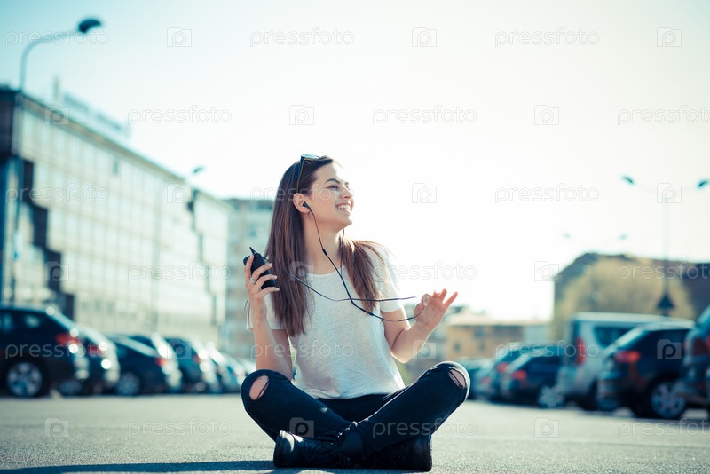 Молодая красивая женщина с телефоном на улице