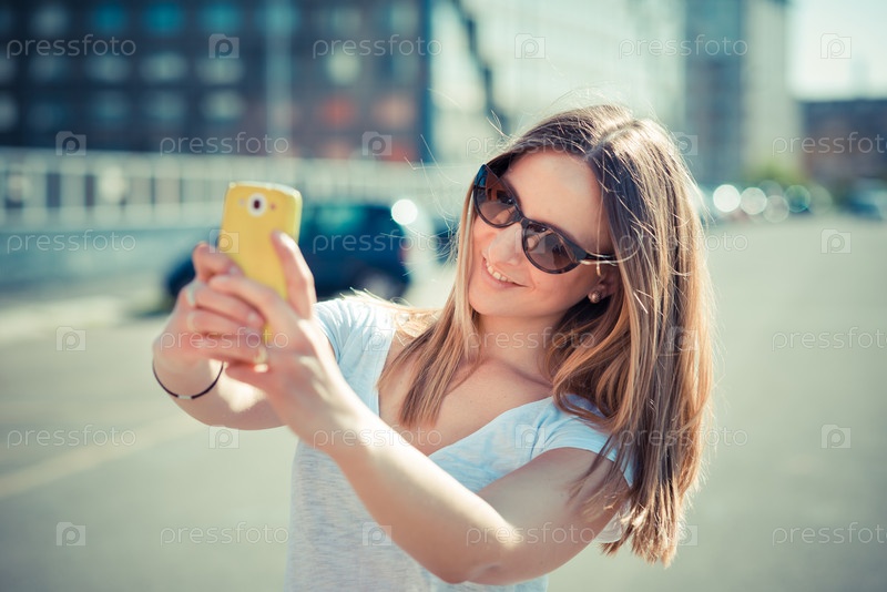Молодая красивая женщина с телефоном на улице