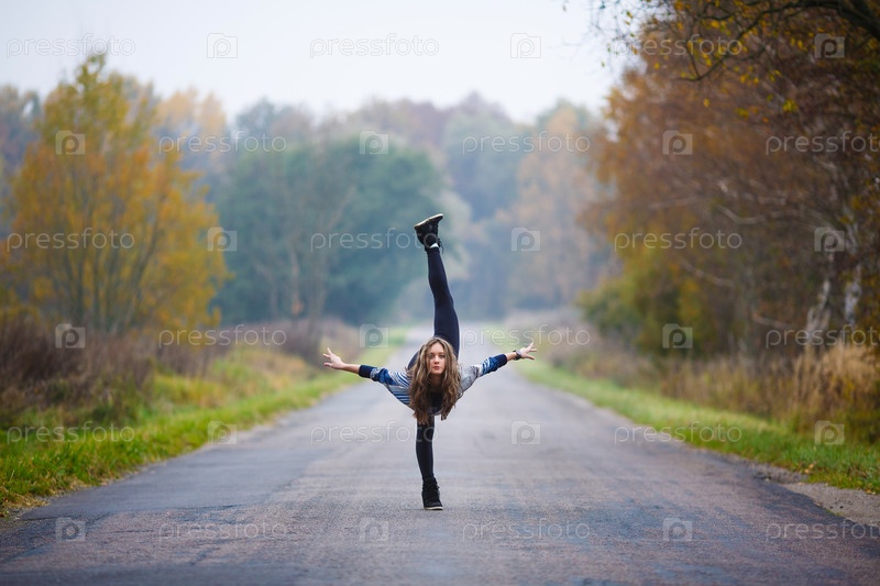Девушка делает шпагат
