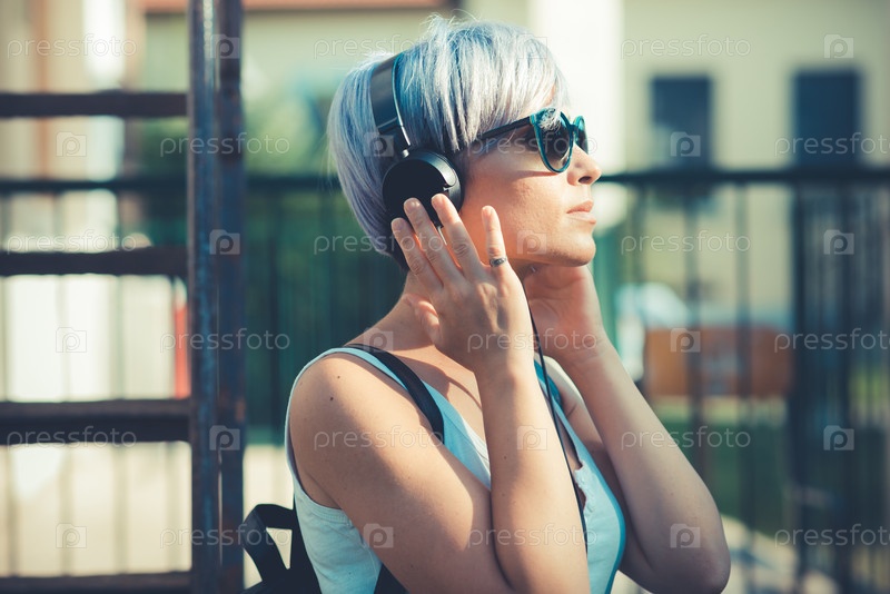 Молодая красивая женщина в наушниках