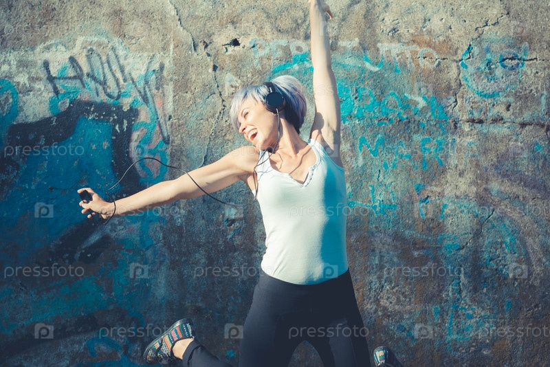 Молодая красивая женщина в наушниках