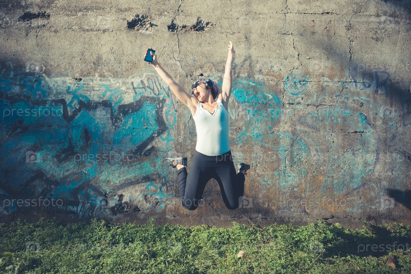 Молодая красивая женщина в наушниках