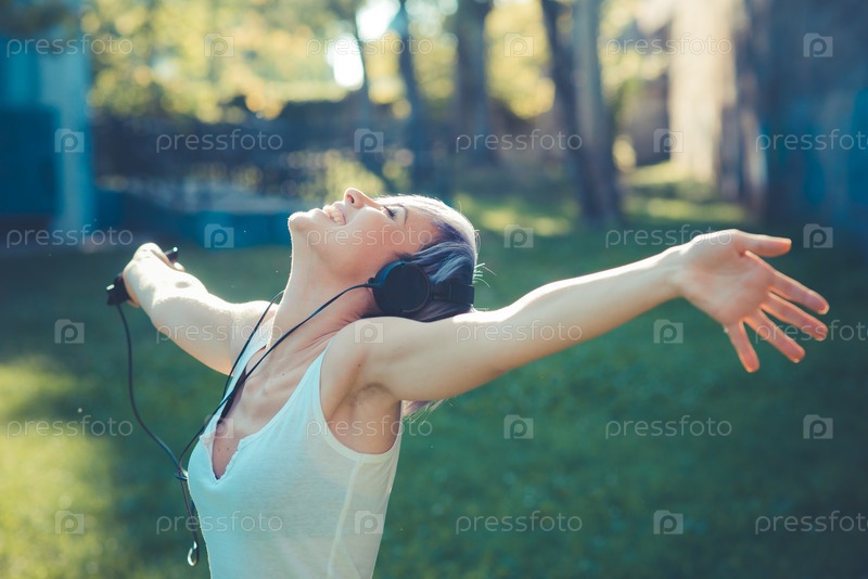 Молодая красивая женщина в наушниках