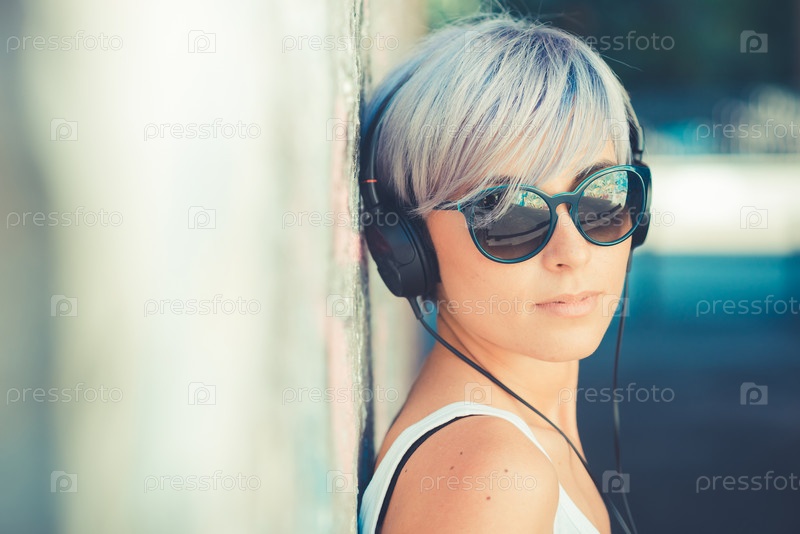 Молодая красивая женщина в наушниках