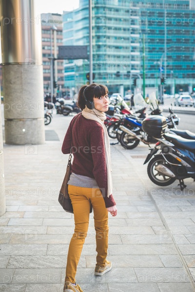 Молодая красивая женщина-хипстер на улице