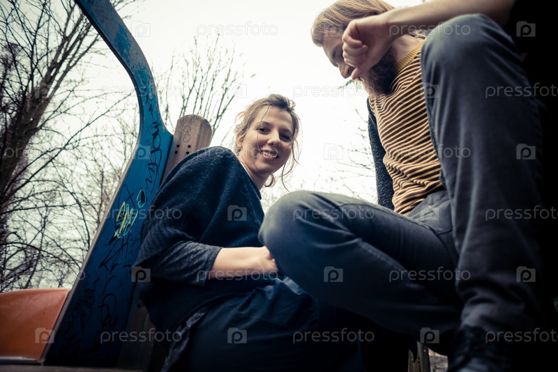 Молодая стильная влюбленная пара на улице