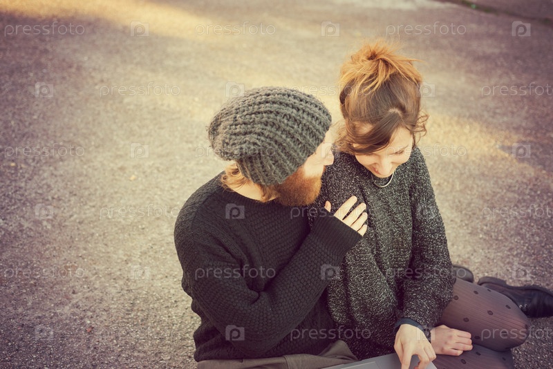 Молодая стильная влюбленная пара на улице