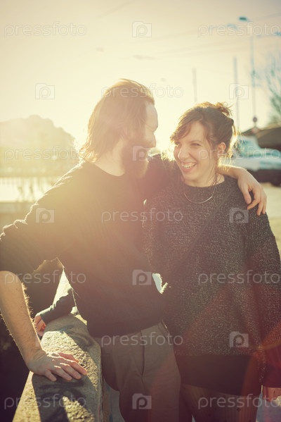 Молодая стильная влюбленная пара на улице