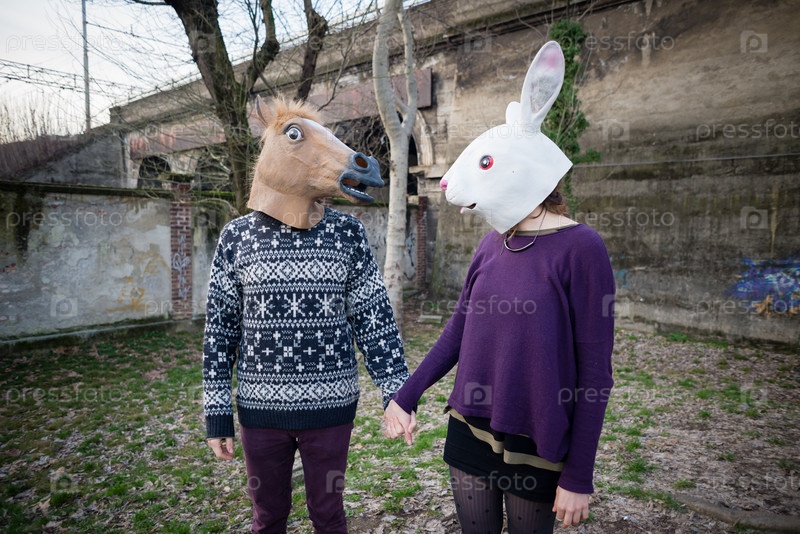 Молодая стильная влюбленная пара на улице