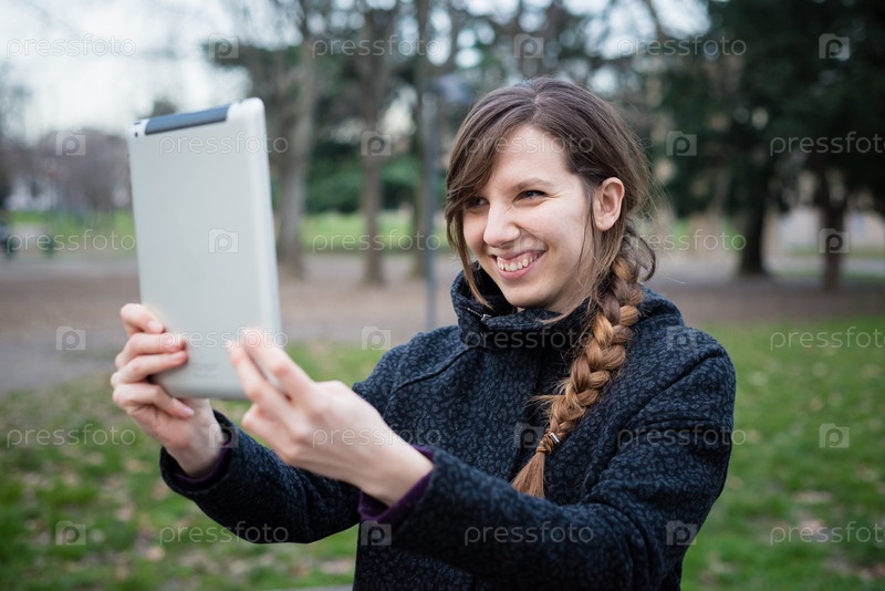 Красивая женщина с планшетом