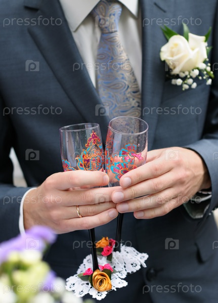 Жених с бокалами в руках