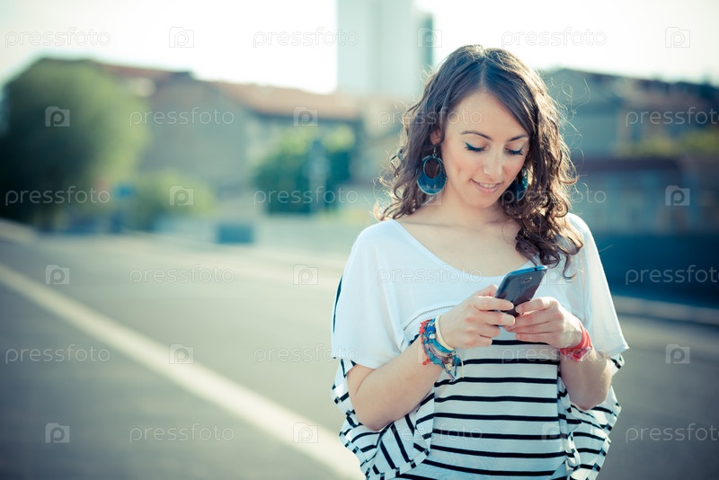 Молодая красивая брюнетка со смартфоном