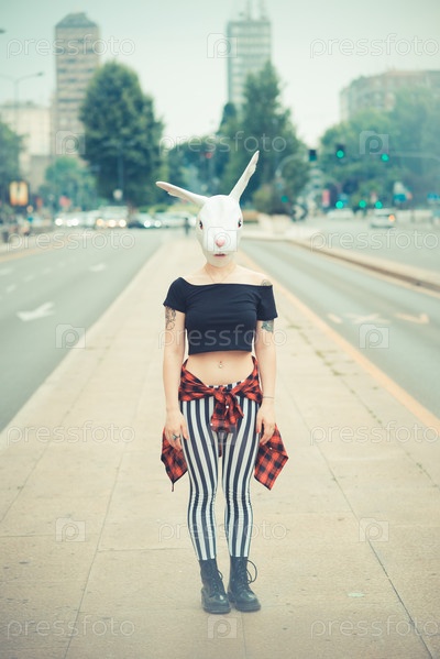 Женщина в маске кролика