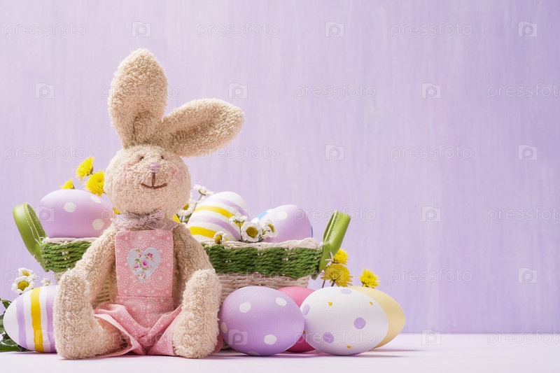 Мягкая игрушка и пасхальные яйца