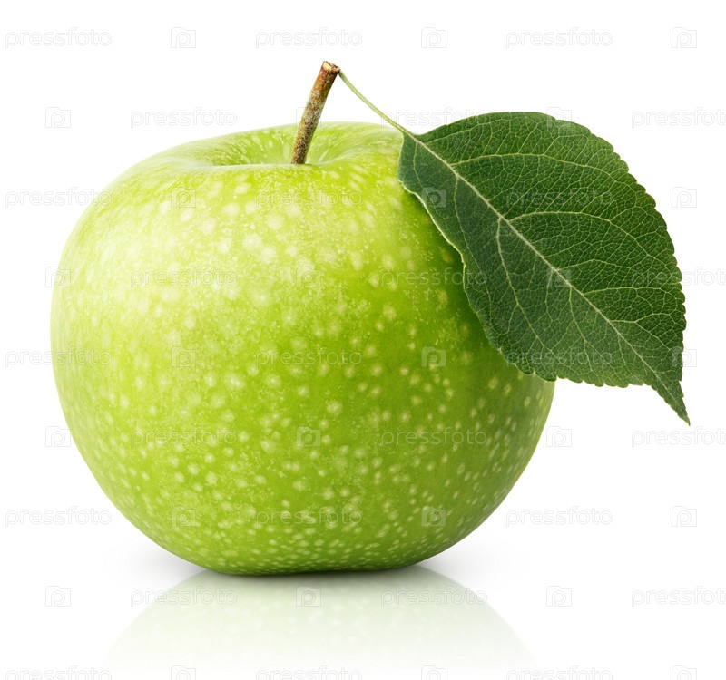 Зеленое яблоко с листьями