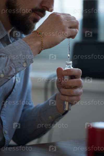 Бизнесмен заполняет электронную сигарету жидкостью