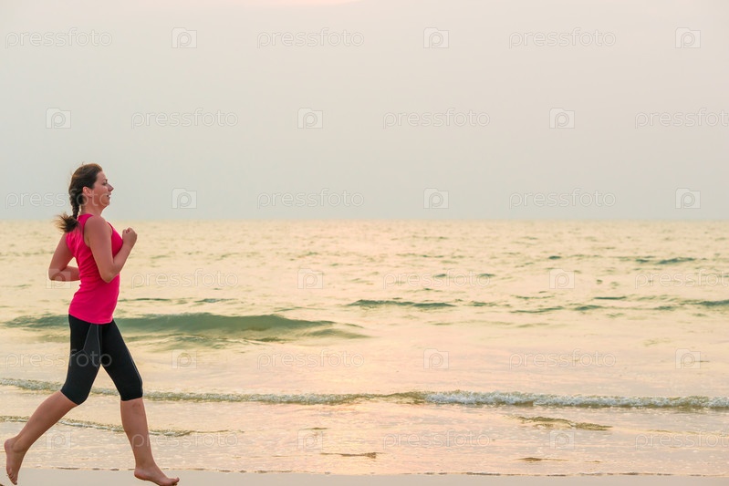 Женщина на пробежке на песчаном пляже