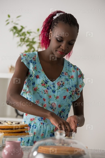 Женщина печет торт