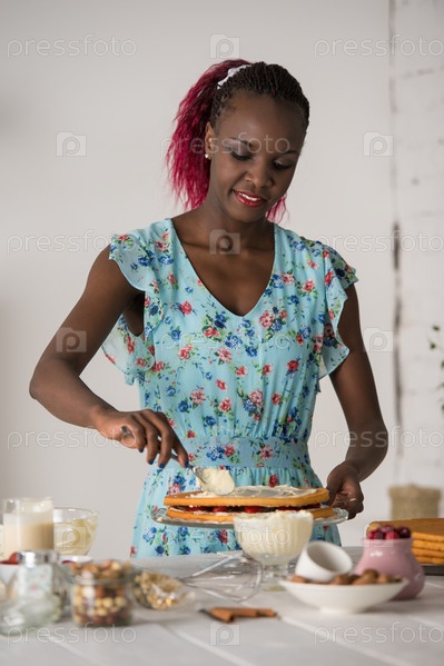 Женщина печет торт