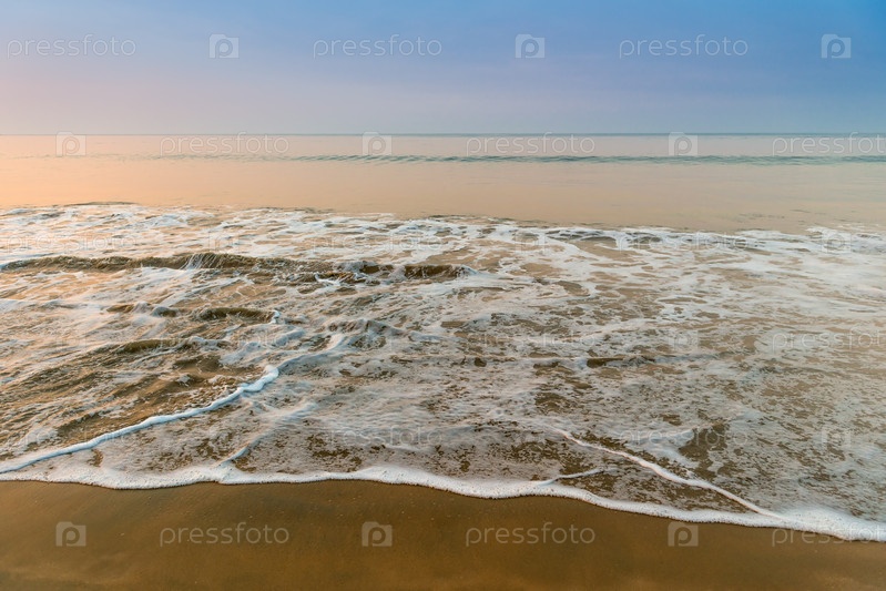 Морские волны с пеной на песчаном пляже