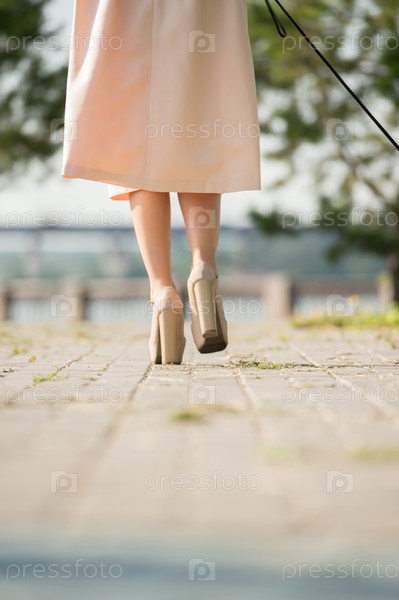 Ноги женщины, идущей по парку