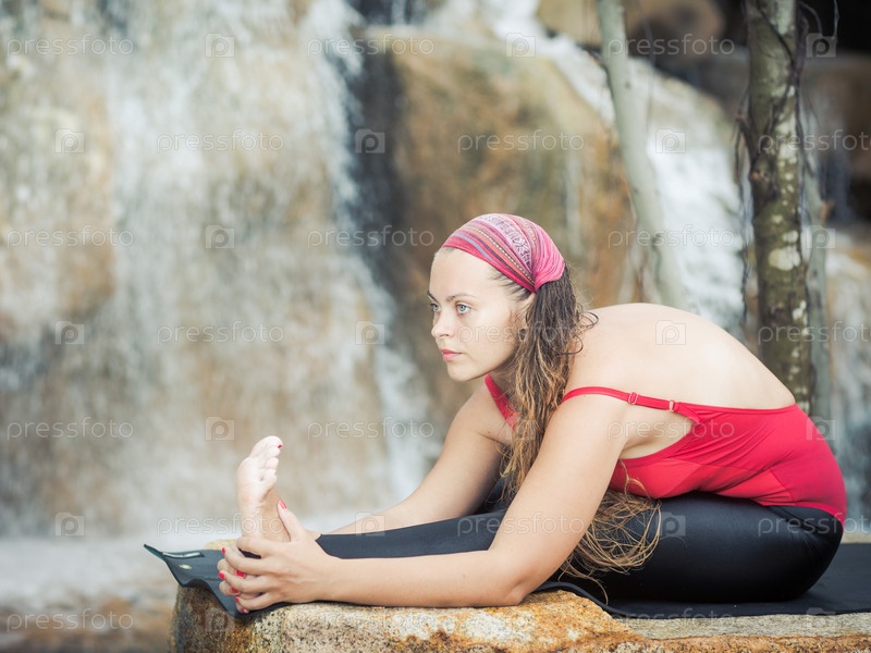 Женщина занимается йогой