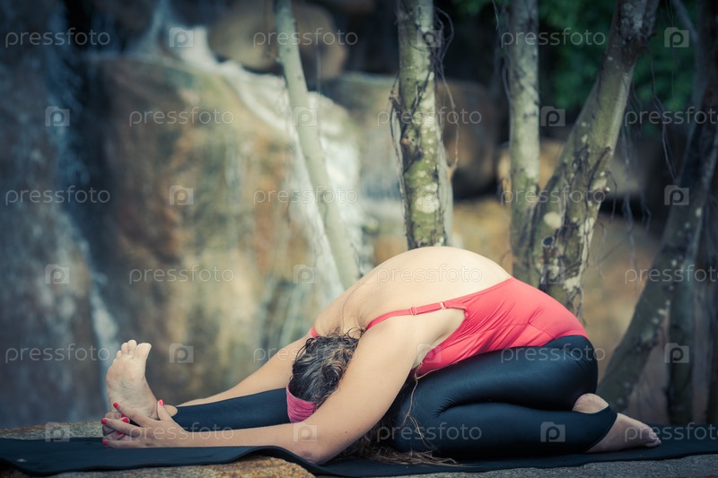 Женщина занимается йогой