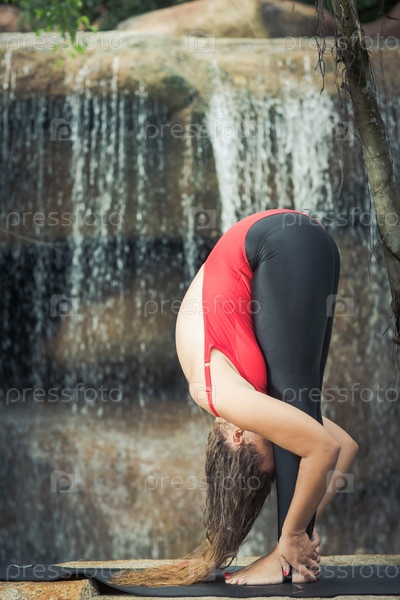 Женщина занимается йогой