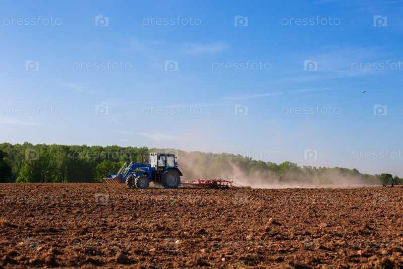 Трактор в поле весной