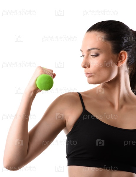 Женщина с зелеными гантелями