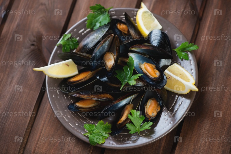Вареные мидии с петрушкой и лимоном