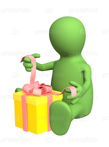Стилизованный человечек, упаковывающий подарок