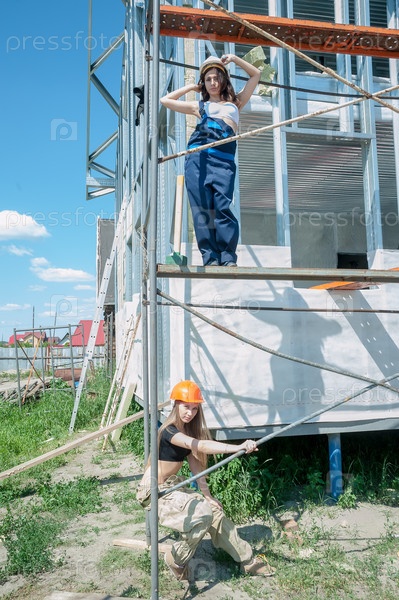 Две привлекательные женщины на строительной площадке