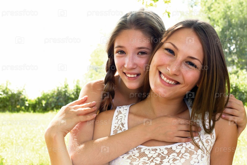 Счастливые сестры отдыхают летом в парке