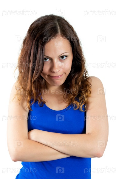 Молодая женщина позирует на белом фоне