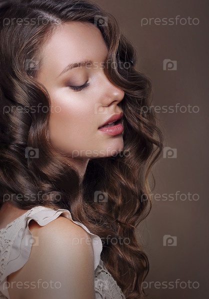 Чувственная романтическая женщина с закрытыми глазами и идеальной кожей