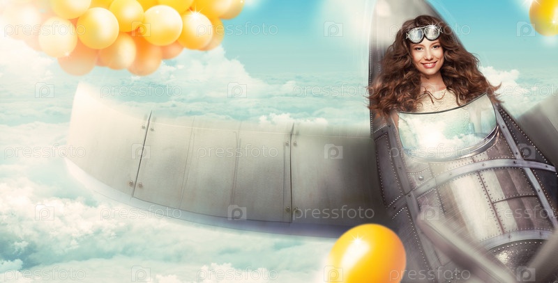 Женщина в кабине самолета